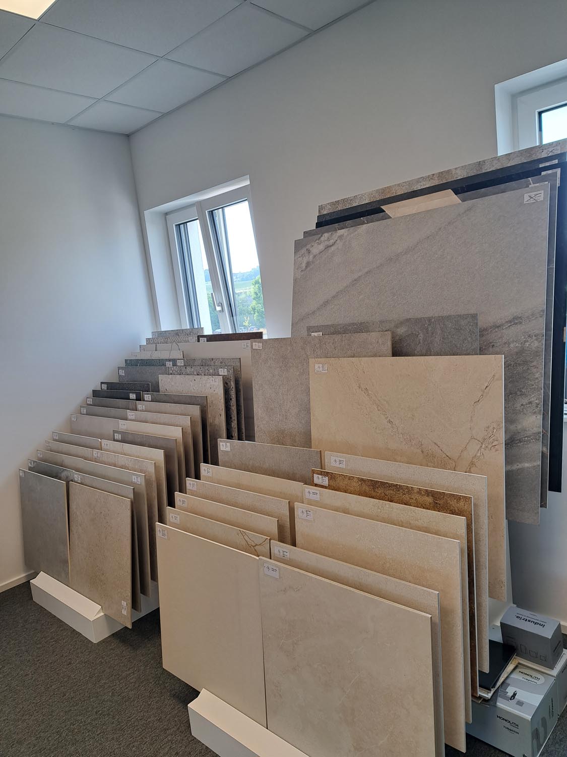 Im frisch gestalteten Schauraum halten wir eine breite Auswahl an Musterplatten für Sie bereit. Hier haben Sie die Möglichkeit, sich ein genaues Bild von den gewünschten Produkten zu machen. Einige Muster können Sie auch direkt mit nach Hause nehmen und auf Ihrem Boden oder anderen Flächen platzieren, um zu überprüfen, ob sie Ihren Vorstellungen entsprechen. Wenn Sie das passende Muster gefunden haben, bestellen wir es für Sie bei unseren Lieferanten.
